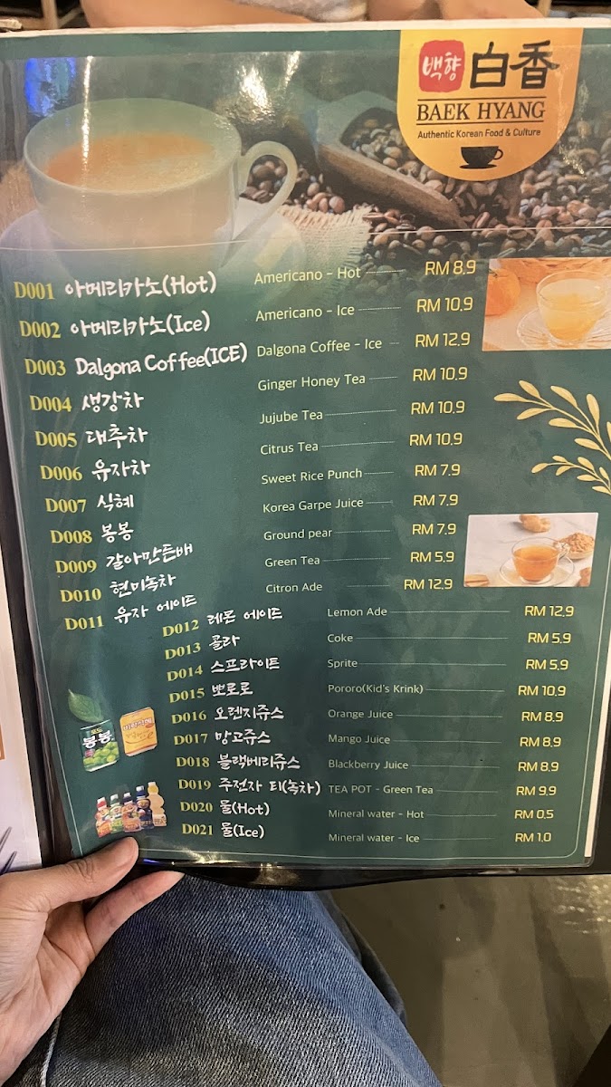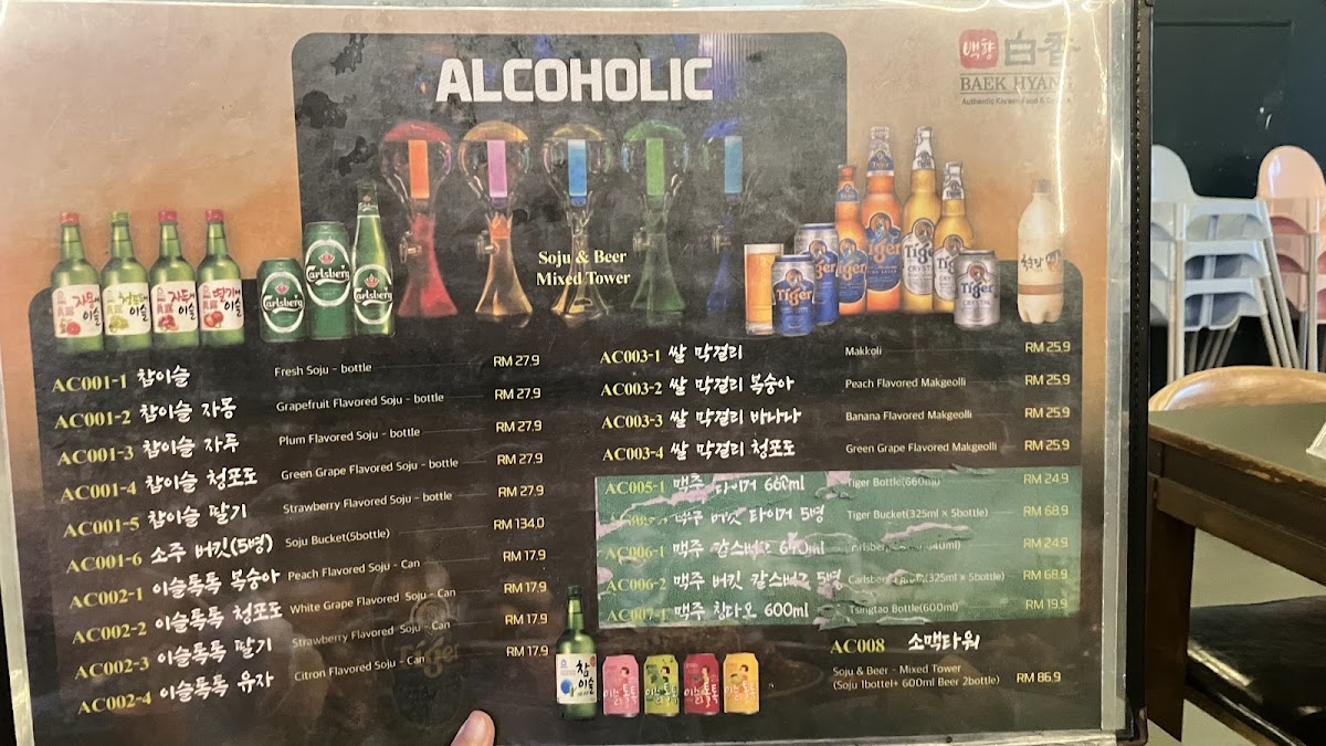 백향 白香 Baek Hyang Korean Restaurant Menu
